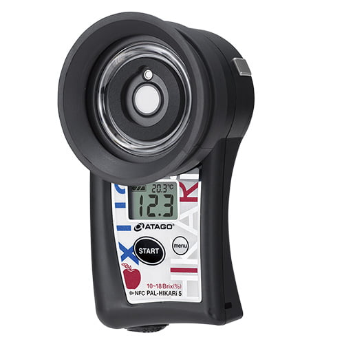 The Brix (sugar level) can be measured by placing the fruit on the sample stage with no need of cutting or squeezing. It requires no more cumbersome wiping and cleansing after each measurement.